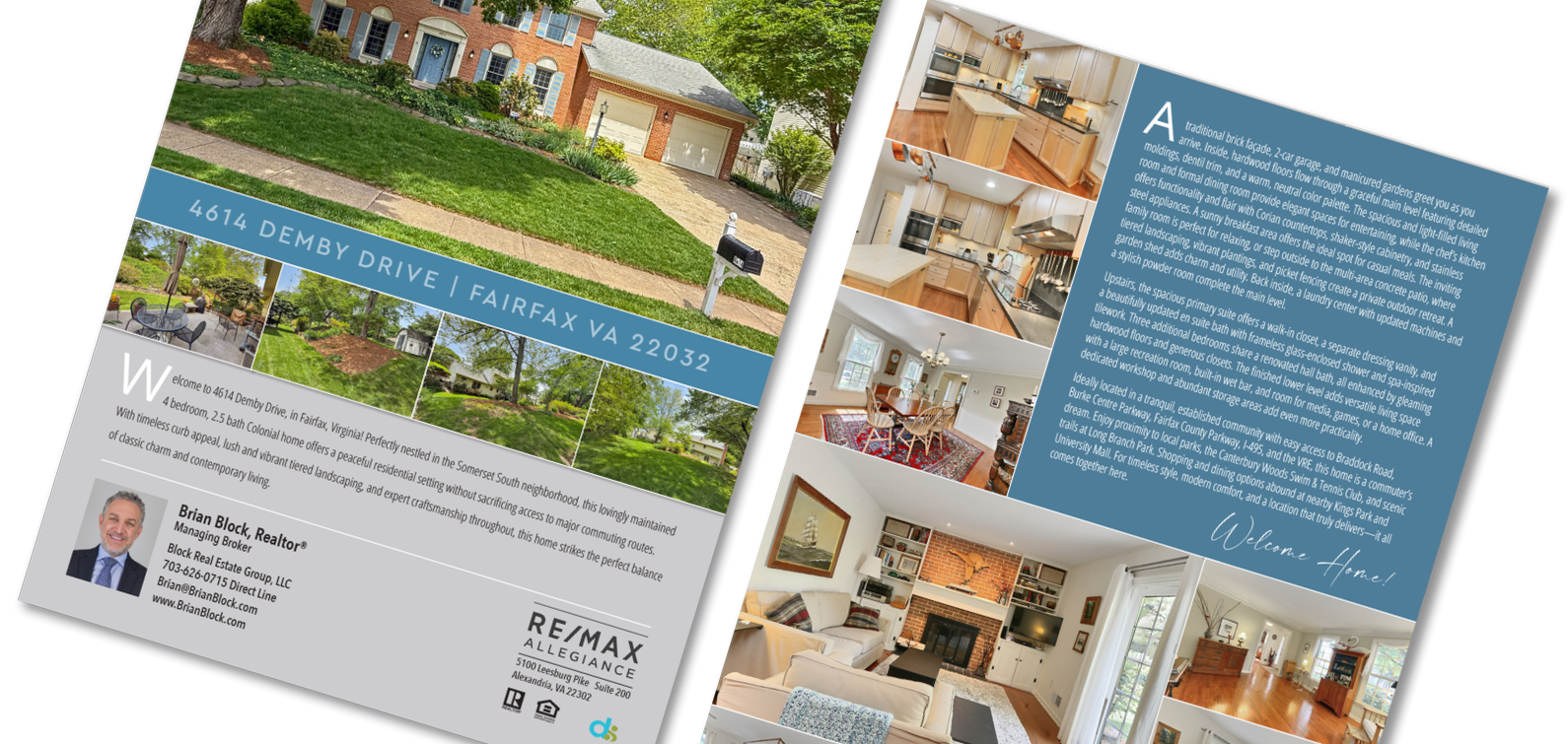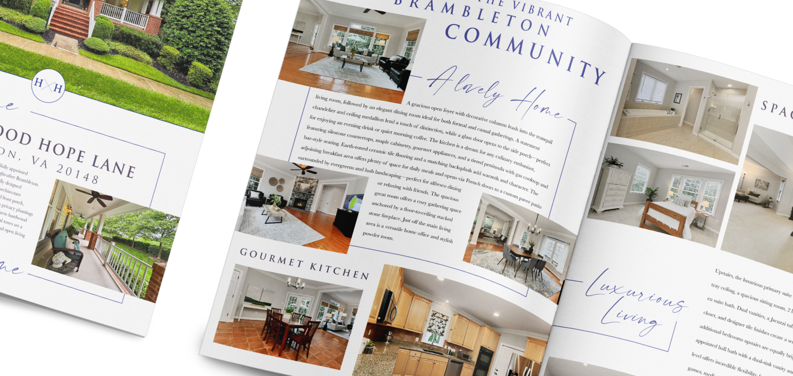 In a market where first impressions matter, a beautifully designed brochure can make all the difference. At DS Creative Group, we transform property details into elegant, high-impact marketing pieces that agents are proud to hand out. Our brochures go beyond basic layouts—they’re professionally crafted to highlight your listings, reflect your brand, and capture buyers' attention long after a showing. From sleek design to high-quality print, we deliver marketing materials that elevate your listings and help you stand out in a crowded market.